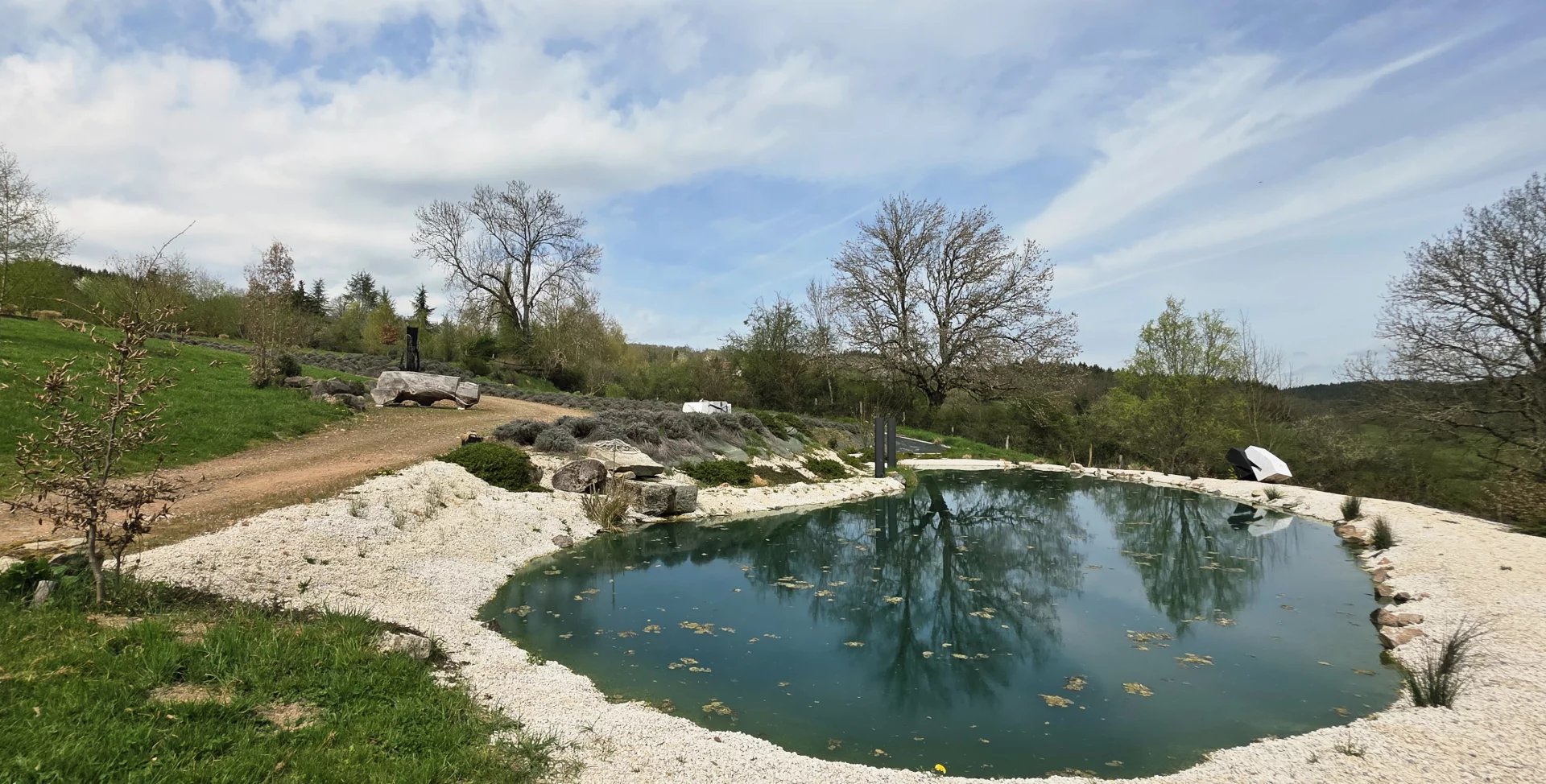 Le terrain de presque un hectare (9581 m2) est agrémenté de sources et d’un puits alimentant deux plans d’eau, dont le plus grand offre un beau potentiel pour création d'un bassin de nage. Actuellement, il accueille quelques carpes koï.