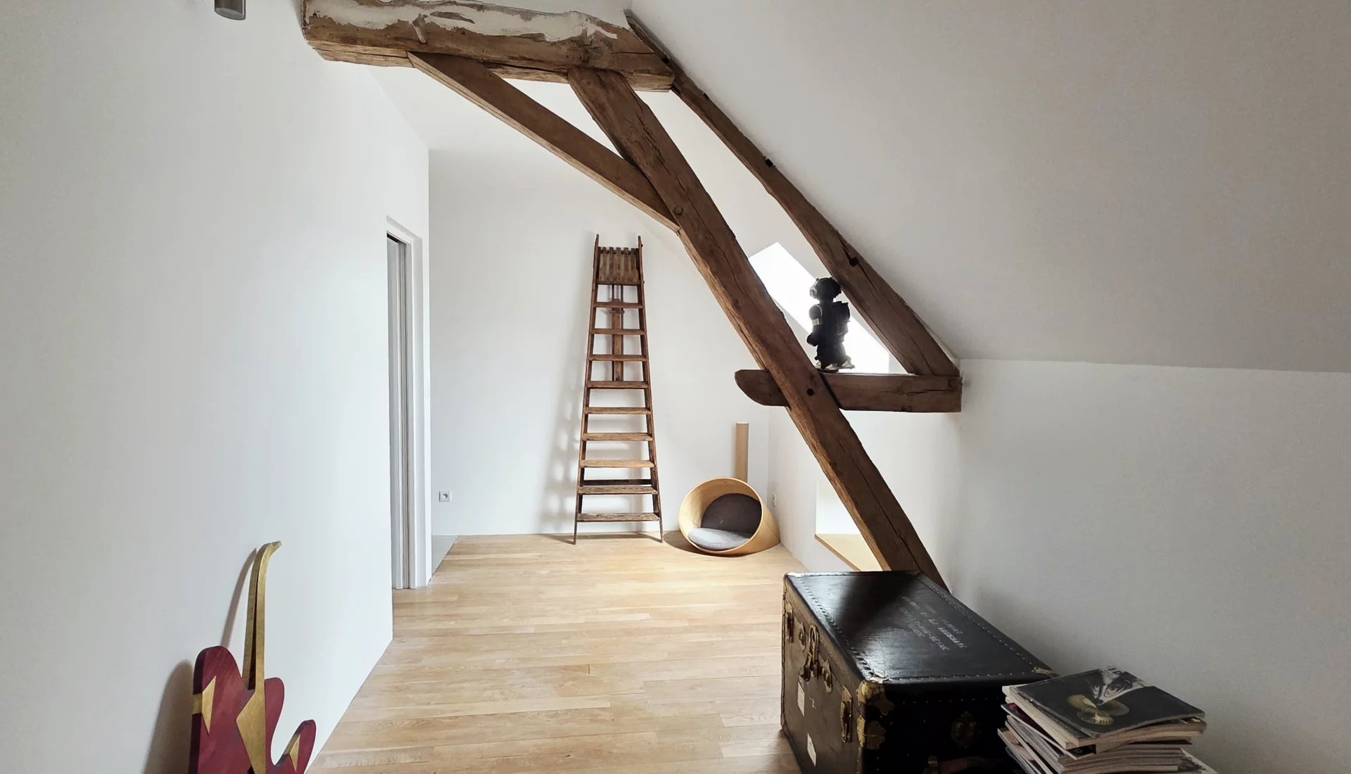 Cette rénovation soignée, au caractère résolument unique, marie avec élégance les pierres apparentes, les plafonds à la française, le béton poli et le bois, ancien comme neuf. Des touches industrielles, notamment à travers les éléments métalliques, viennent sublimer l’ensemble. Les volumes généreux sont mis en valeur par de grandes baies vitrées, offrant une luminosité exceptionnelle dans les pièces principales. Des pièces de séjour ou bureau peuvent facilement être adaptées pour servir aux besoins des familles nombreuses.